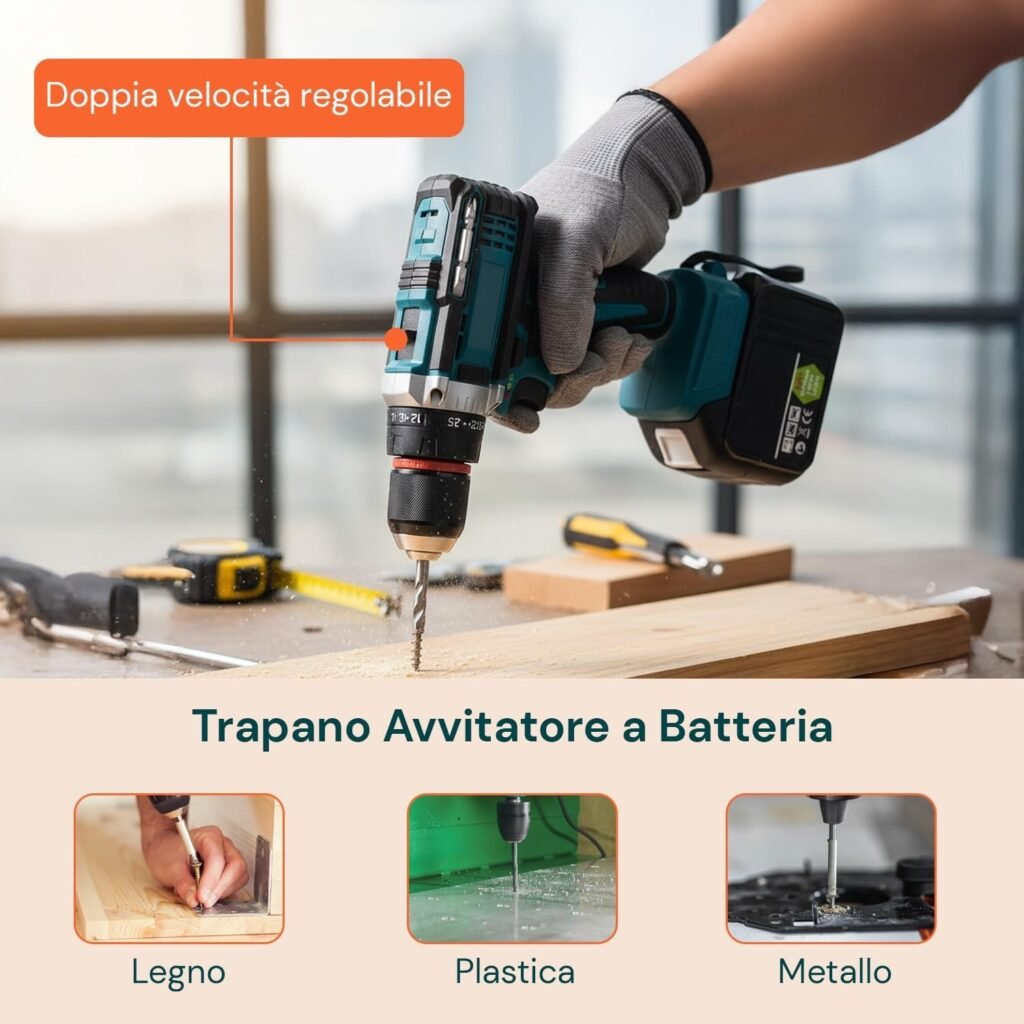 Il nostro trapano avvitatore a percussione combina la potenza di un trapano con la precisione di un avvitatore, offrendoti la versatilità di affrontare qualsiasi lavoro con una sola soluzione.