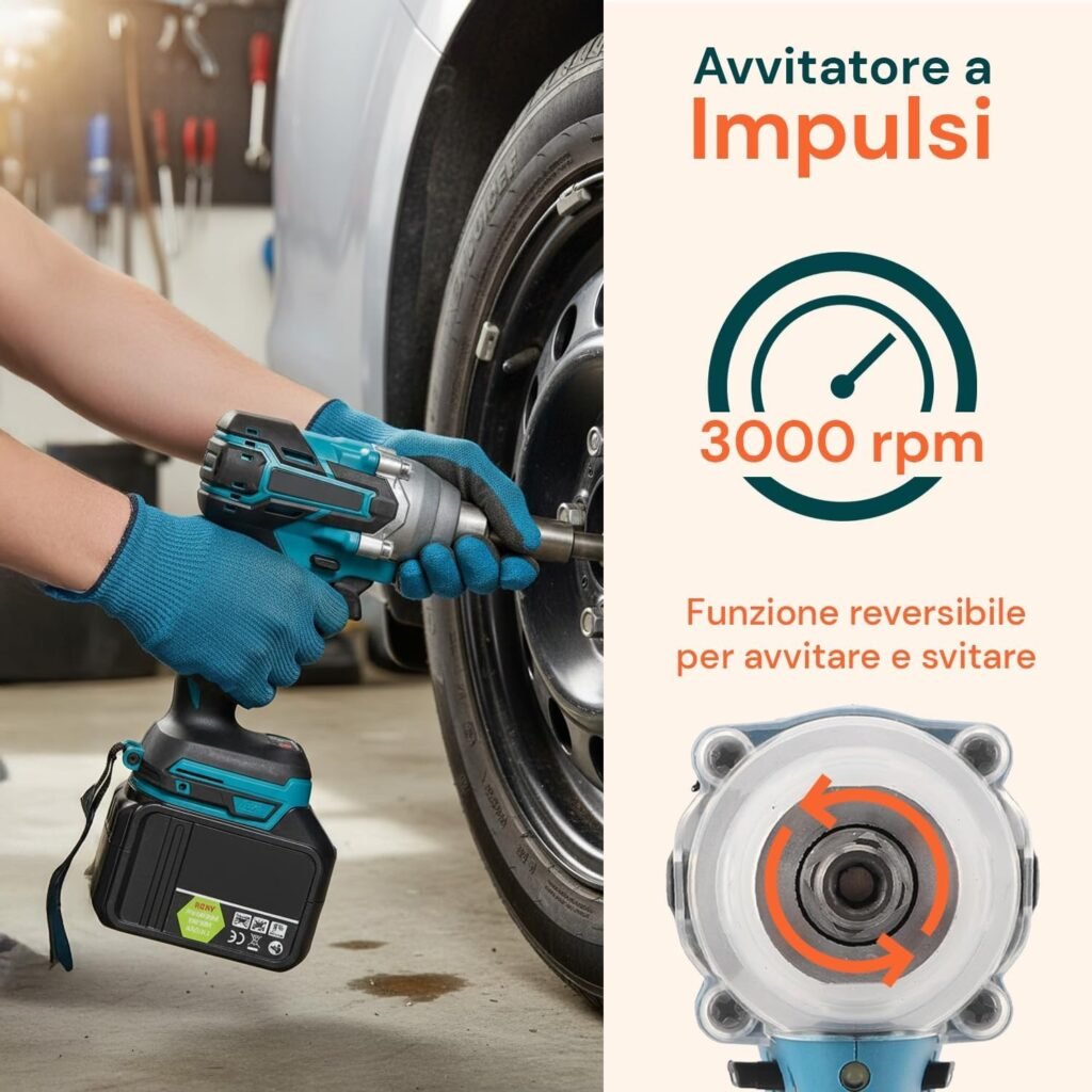 Grazie alla sua potenza e alla tecnologia avanzata, questo strumento è progettato per rimuovere facilmente anche i bulloni più difficili senza sforzo, risparmiandoti tempo e fatica.