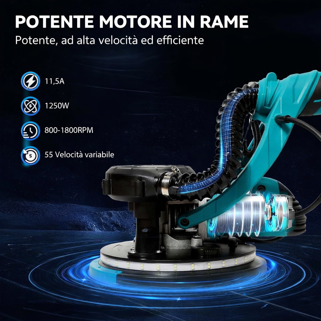 Motore in ottone da 11,5 Ampere: questa lucidatrice elettrica a secco è dotata di un motore in ottone da 1250 W, 11,5 A, che fornisce prestazioni potenti per ottenere una lucidatura efficiente.