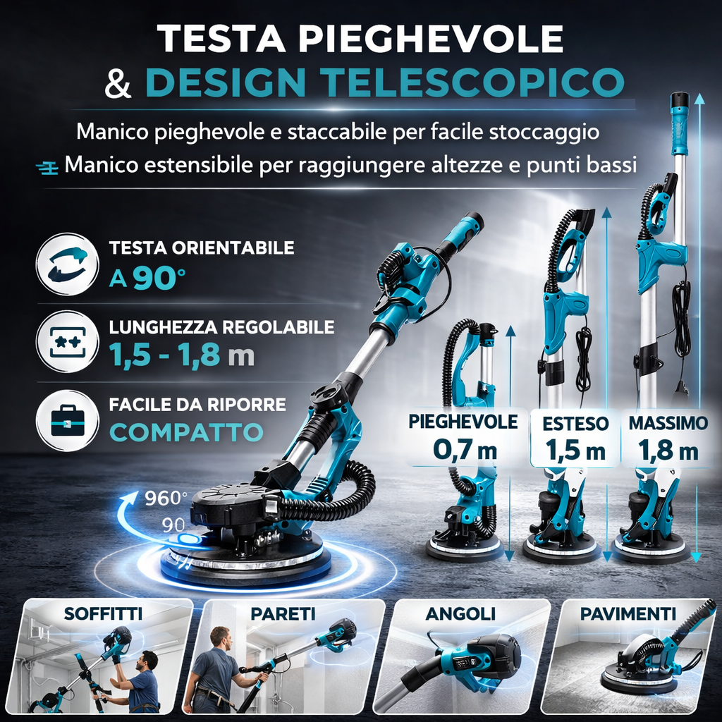 Applicazione versatile: adatto per levigare e lucidare superfici lisce e ruvide su pareti interne ed esterne, soffitti, adesivi, gesso, legno e altri materiali.