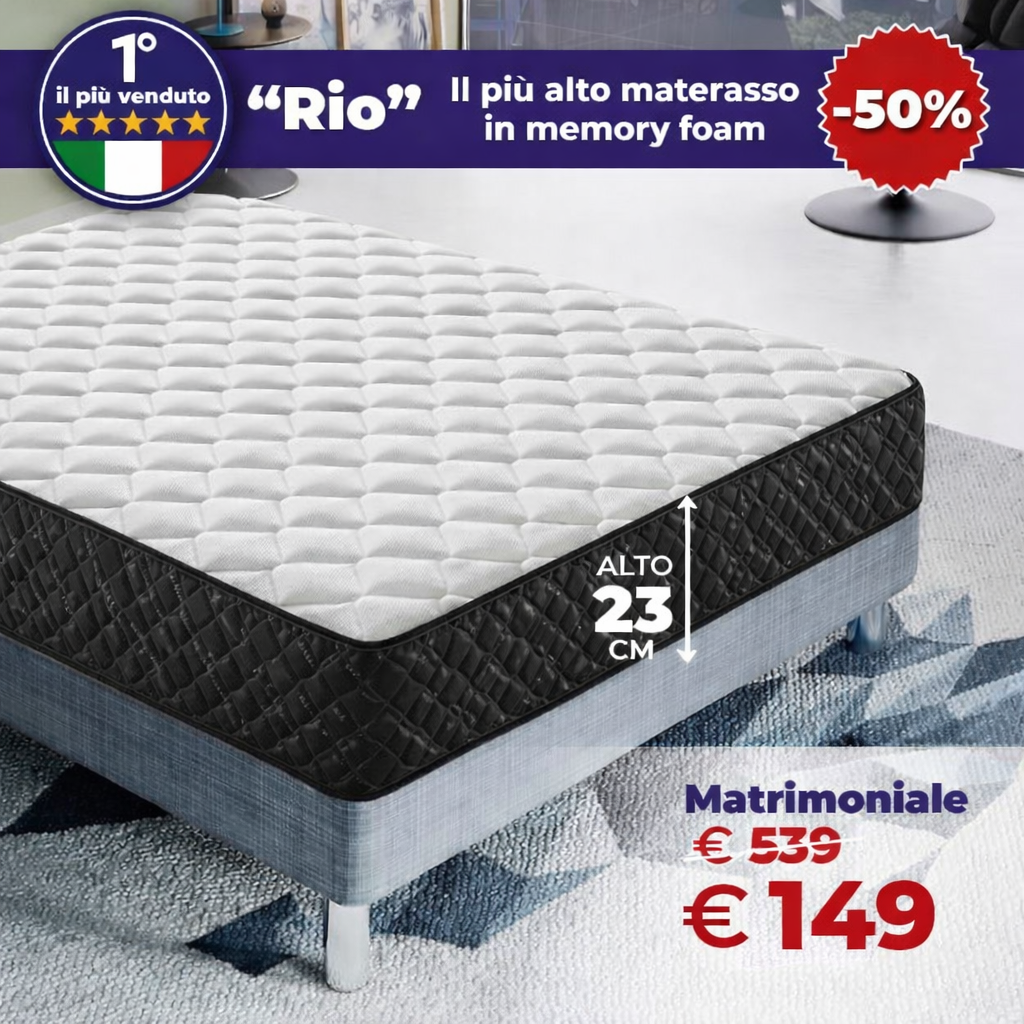 🚚 Spedizione sottovuoto gratuita: il materasso arriva sigillato, igienico e facile da trasportare. Si espande naturalmente in poche ore mantenendo la qualità del Memory Foam.
