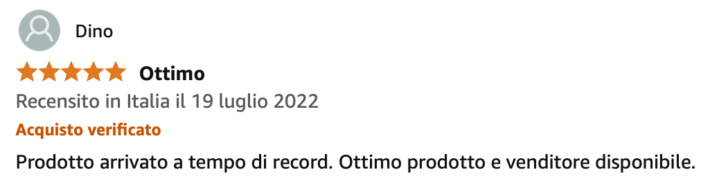 Per quanto riguarda gli ordini esteri, i tempi di consegna variano dai 3 ai 5 giorni lavorativi