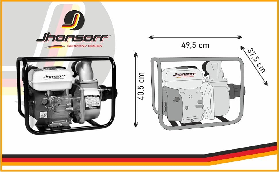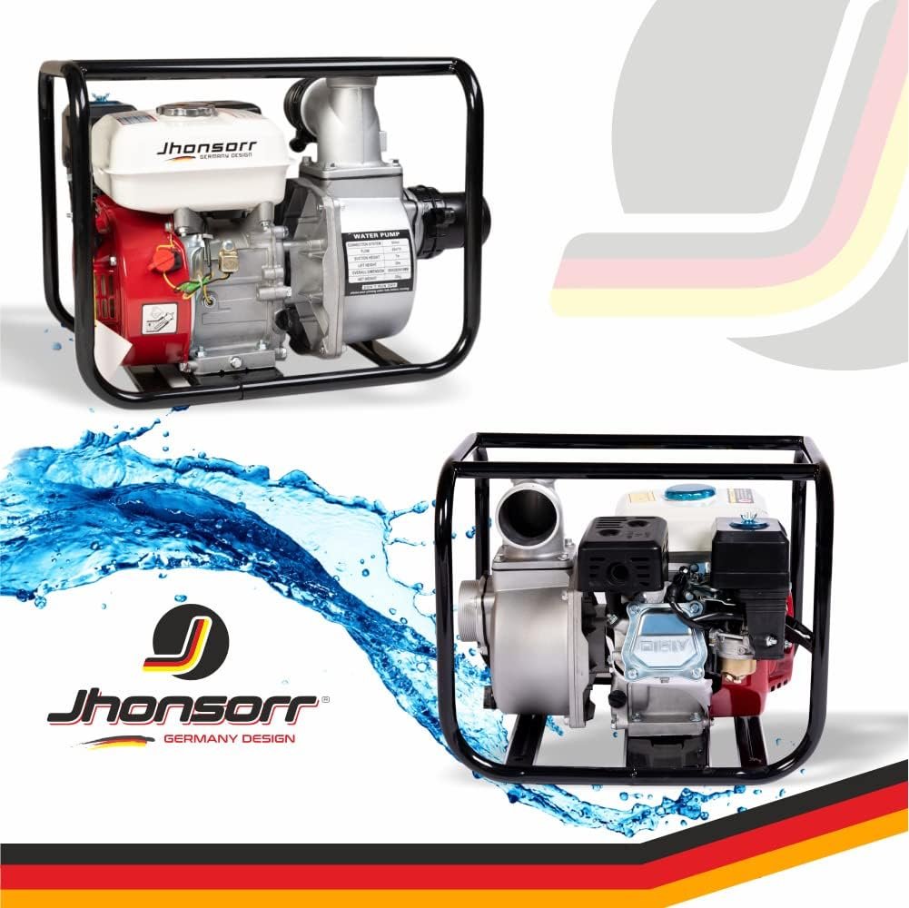 La motopompa Jhonsorr Germany Design è una potente macchina alimentata a benzina con un motore da 6,5 CV 196cc 4 tempi OHV autoadescante, ideale per la gestione di quantità ingenti di acqua,particolarmente utile quando si deve estrarre acqua da un pozzo, da cisterne, da uno stagno e vasche difficilmente raggiungibili, o anche quando si deve drenare una cantina o un garage che si allagato.